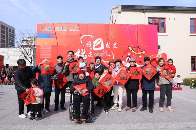 集市现场,笔墨红纸晕染吉祥话,写福送福的春联摊位前围满了人,“招财进宝”“年年有余”等祝福语跃然纸上,为居民们送上新年好意头。书法老师精心写“祥瑞”,手工艺老师巧手剪“彩头”,现场的居民纷纷驻足观看,为老师们的精湛技艺点赞,每个人脸上都洋溢着幸福的笑容,“年味”在家门口的墨香中弥漫开来。